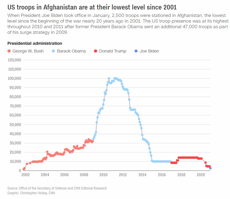 ცნობისთვის, ავღანეთიდან აშშ-ს ჯარების გაყვანის პროცესი უკვე დაიწყო და თანდათან გაგრძელდება. ბაიდენის თქმით, ამერიკელი სამხედროების ნაწილი, ამერიკელი დიპლომატების დასაცავად ავღანეთში დარჩება. თუმცა, რა რაოდენობაზეა საუბარი, ბაიდენს ეს არ დაუკონკრეტებია.