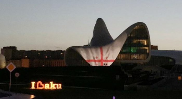 აზერბაიჯანის დედაქალაქ ბაქოში მდებარე ჰეიდარ ალიევის ცენტრის შენობა საქართველოს დროშის ფერებში განათდა. ინფორმაციას და ფოტოს ადგილობრივი მედია ავრცელებს.