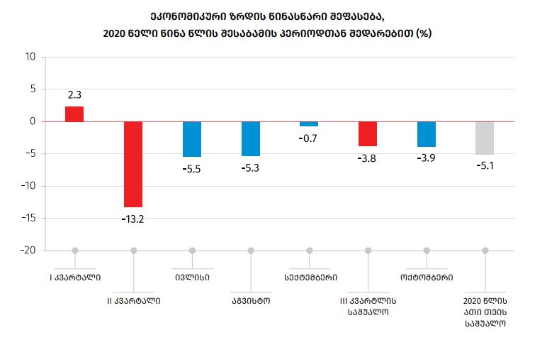 სტატისტიკის ეროვნული სამსახურის ცნობით, 2020 წლის ოქტომბერში წინა წლის ანალოგიურ პერიოდთან შედარებით საქართველოს ეკონომიკა 3.9%-ით შემცირდა.