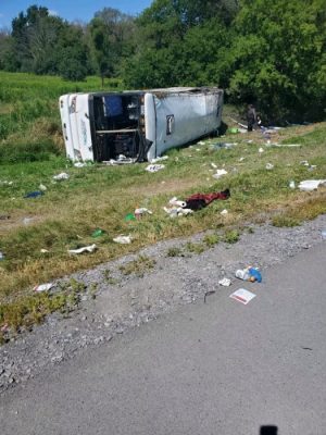 აშშ-ში, ნიუ-იორკის შტატში, ტურისტებით სავსე ავტობუსი გზიდან გადავარდა.