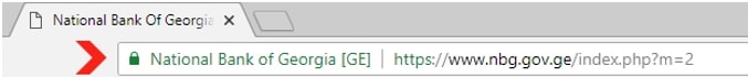 - გადაამოწმეთ ვებმისამართი. ფინანსური მომსახურების გამოყენებამდე შეამოწმეთ ის ვებ-მისამართი, სადაც აპირებთ მონაცემების შეყვანას. იმისათვის, რომ დარწმუნდეთ, რომ უსაფრთხო ვებგვერდზე იმყოფებით, აუცილებლად შეამოწმეთ, რომ ვებმისამართი იწყებოდეს ‘https://’ ან ‘shttp://’-ით. ასევე, დარწმუნდით, რომ ვებმისამართის მარცხენა კუთხეში განთავსებულია მწვანე, ჩაკეტილი ბოქლომის სიმბოლო (იხ. ქვემოთ). დამატებით, შეგიძლიათ დააჭიროთ ბოქლომის ღილაკს, რომ შეამოწმოთ ვებგვერდის სანდოობა და უსაფრთხოების დამადასტურებელი სერტიფიკატი.