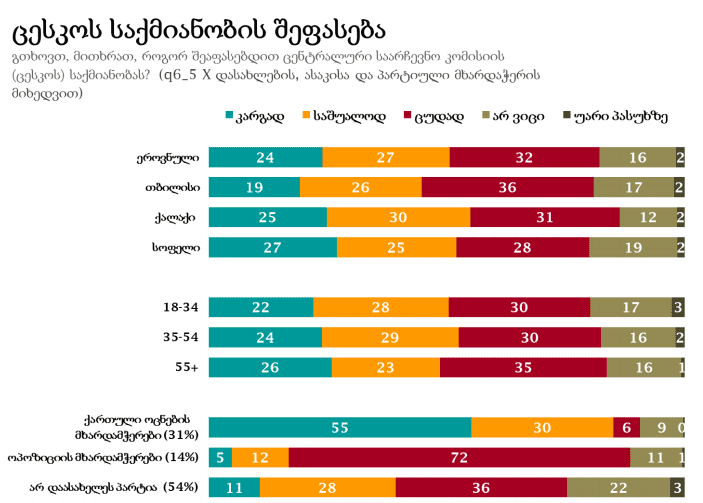კვლევის მიხედვით, ამოკითხულთა 32% ცესკოს საქმიანობას ცუდად, ხოლო 24% კარგად აფასებს.