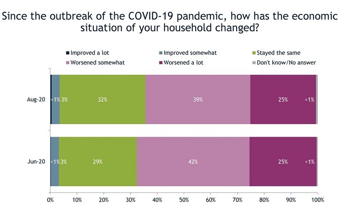 კვლევის მიხედვით, პანდემიის დაწყების შემდეგ გამოკითხულთა უმეტესობის ეკონომიკური მდგომარეობა გაუარესდა.