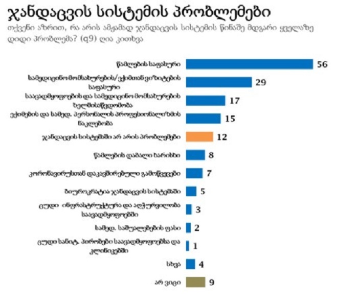 NDI-მ ახალი კვლევა გამოაქვეყნა, რომლის მიხედვითაც გამოკითხულთა 56%-ს მიაჩნია, რომ ჯანდაცვის სისტემის ყველაზე დიდი პრობლემა წამლების საფასურია.