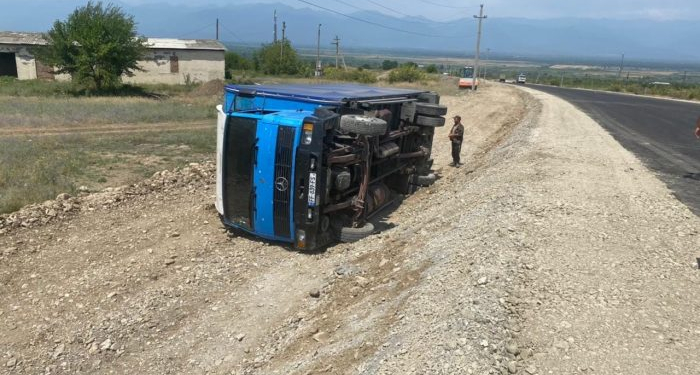 გურჯაანის მუნიციპალიტეტში საზამთროთი დატვირთული სატვირთო გადაბრუნდა. შემთხვევა ცოტა ხნის წინ, ბაკურციეხე-გურჯაანის დამაკავშირებელ გზაზე მოხდა.