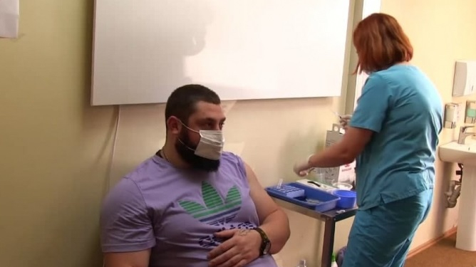ოლიმპიური ჩემპიონი ლაშა ტალახაძე საჩხერის სამედიცინო ცენტრში კორონავრისუსი საწინააღმდეგო ვაქცინით აიცრა.