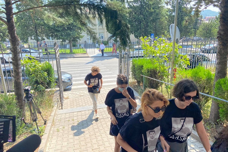 გიორგი შაქარაშვილის საქმეზე დაკავებულების სასამართლო პროცესზე გიორგის კლასელები მივიდნენ. თითოეულ მათგანს შავი მაისური აცვია, რომელზეც გარდაცვლილი გიორგი შაქარაშვილის გამოსახულებაა დატანილი.