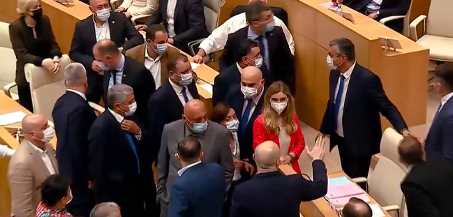დაპირისპირებაში ჩაერთნენ უმრავლესობისა და „ნაციონალური მოძრაობის“ წევრებიც, დაპირისპირების შემდეგ კი მალევე ნიკა მელიამ სხდომათა დარბაზი დატოვა.