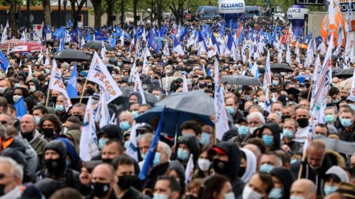 ათასობით „გაბრაზებული პოლიციელი“ ეროვნული ასამბლეის წინ იკრიბება
